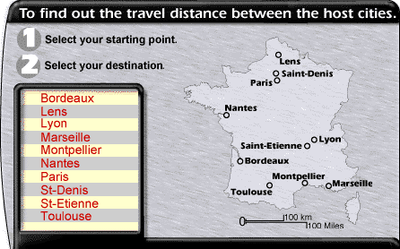 With the maximum distance of less than 1,000 kilometres separating the cities which will host the competitions, the 1998 World Cup will offer one and all, to participants as well as spectators, the easiest and best transport conditions. The 1998 World Cup cities are connected to each other by either the expressways or main highways and each of them has an airport for which numerous additional flights will be scheduled.